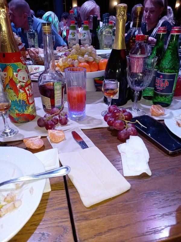 Отмечали новый год 2023 было прекрасно, программа хорошая, еды много. А в этом году встретили 2024 год просто ужасно стол пустой. Зелень пучком брошена на полупустую тарелку с погибшимисолеными огурцами. С одной стороны салат оливье в одной тарелке. На 7 человек . С другой стороны стола ещё какой то салат. Мясная нарезка. И овощная нарезка. И одно горячее подано на общим блюде. И это на 7 человек. .. Просто ужас. Программа отваратииельная. Можно сказать её и не было... Было впечатление как-будто мы просто пришли покушать. Развлекали себя сами... На следующий год пойдём в другое место, нам не понравилось. Всё гости в ужасе.......