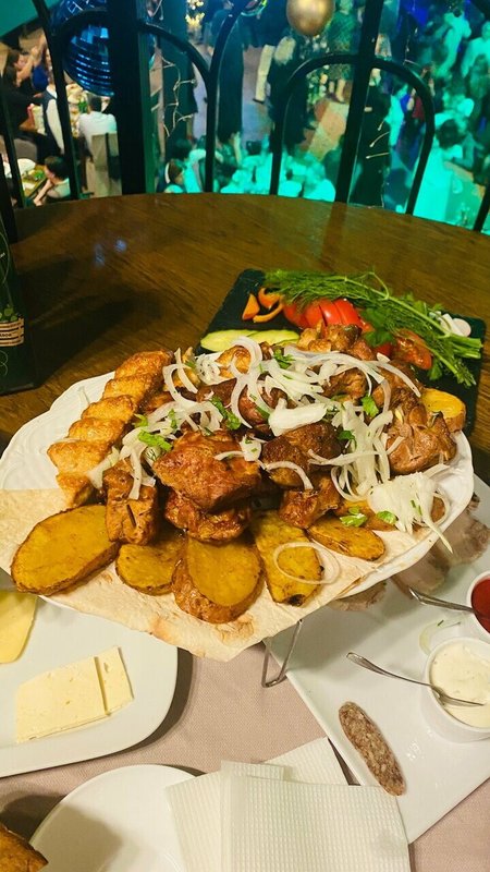 8 марта «коту под хвост».Муж забронировал стол,хотел меня порадовать.Приехали ко времени,семья из 3 чел.Сомненья начали меня терзать,с гардероба!Мало того,что никто не встречает своих гостей ,( а мы именно гости данного заведения ) гардероб открыт,заходи кто хочешь-бери что нравится!Официанты и администратор,из-за барной стойки спросили,»что хотели?»В смысле?Ну ,как бы ответ же очевиден…..Нас троих усадили за длинный стол на 10-12 чел.,принесли меню.Минут через 5,видимо до кого-то дошло,пересадили за стол на 3-х.Заказали блюда тщательно изучив меню ( я думаю все так делают и исходят из своих предпочтений,ограничений и т.д),я заказала блюдо «твджик» в меню написан состав этого блюда ( БАРАНИНА,ЛУК ,ОВОЩИ!!!!!!!)Но к этому еще вернемся!После сделанного заказа и 15 минутного время ожидания,нам приносят чай в чайнике ( с грязной крышкой!) и три кружки ( две из них со сколами и грязью в этих сколах!)Попросили заменить кружки,заменили ( но боже!это было с таким лицом официанта,как будто попросили при нас сделать новую кружку).Салаты что на вид,что на вкус прям на 3-ку,есть можно,но не уровня ресторана.Когда мне принесли ,мое горячее блюдо,я не сразу поняла,что с ним что-то не то.Съев кусочек массы ( по другому это не назовешь),я поняла,что это печень!Но я же заказывала баранину.Позвали официанта,спросили,что за блюдо вы мне принесли.Говорит то,что вы заказывали!Хорошо!Спрашиваю,что написано в меню?из чего состоит блюдо?Ответ меня убил!!!! Я понятия не имею!Позвали администратора,спрашиваю его.Он отвечает так как написано в меню,спрашиваю,а у меня то что в кеци?После этого ответа,я потеряла дар речи.Так это печень барана!Что бл……ь?вы серьезно?Почему у вас в меню про печень ни слова,почему официант не знает меню и вообще в принципе состав блюд.И на закусочку!Приносят в конце хачапури с яйцом.Чуть подрумянился верх лепешки,яйцо сырое,а низ просто тесто,которое даже не успело схватиться в печи.Итог : 3 салата,чай,бокал пива,2 горячих блюда мы оплатили сумма около 4 т.р ( лепешку и «баранину» из чека вычли,спасибо и на этом!) Сказать,что мы были расстроены и вечер был испорчен,ничего не сказать