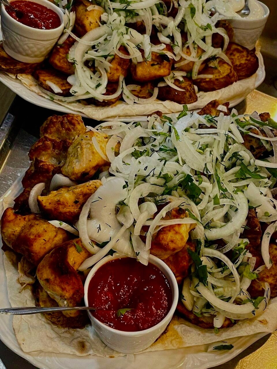 Были на корпоративе и заказ меню обговаривался заранее, на горячее были заказаны порционные шашлык и люля естественно выходило дороже чем общая тарелка. По приходу в ресторан нас попросили закрыть чек мы без всякого сомнения это сделали, но когда дело подошло до горячего нам на стол на 13 чел поставили всего 2 общих тарелки шашлыка вместо 13 порционных.